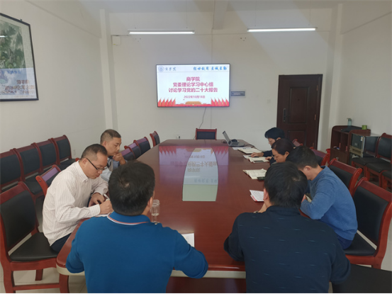 10月18日,商学院党委理论学习中心组在经315开展了第九次集体学习,专题深入学习讨论党的二十大报告,学院党委书记曹文明主持并讲话,全体中心组成员参加学习讨论。
