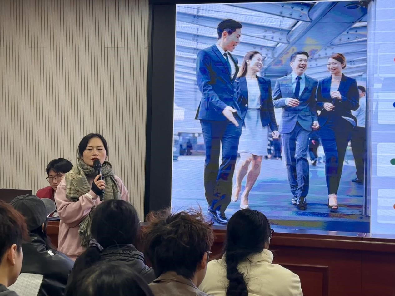 随后,陈佩女士对第十五届“工行杯”全国大学生金融科技创新大赛进行了全面解读,详细阐述了大赛的背景、参赛渠道及相关细节。她强调,该赛事是大学生展示实践与创新能力的重要平台,不仅有助于深化金融专业知识,还能锤炼项目管理能力,激发金融科技创新思维,提升金融素养,增强就业竞争力,为同学们的职业生涯奠定坚实基础。陈佩女士鼓励同学们积极报名,踊跃参与,充分利用这一宝贵机会。