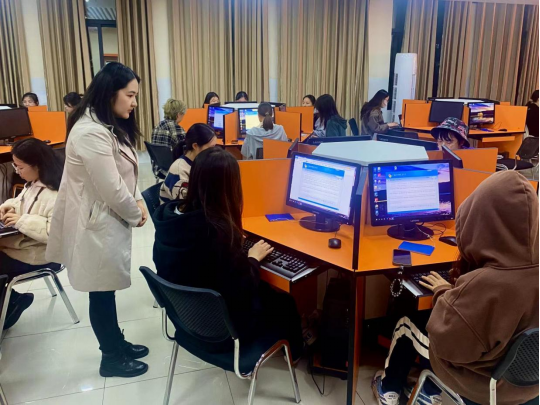 竞赛以现场实践操作的方式进行,同学们按比赛要求在计算机应用软件中录入指定英文,以综合速度和准确率评分作评分标准,监考员全程监督,确保比赛过程公平公正。