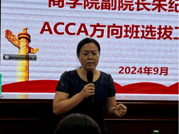 朱纪红介绍了ACCA方向班的遴选工作安排。她表示ACCA方向班作为学院重点教学项目旨在为优秀学子提供优质的国际化财经教育教学资源,培养提升学生综合素质与国际视野,推动学院高端财经人才的培养,为社会输送更多优秀的国际化精英人才。她寄语同学们提前做好大学规划,努力践行“勤学、务实、圆融、卓越”的校训,拥有一个充实美好的大学生涯。