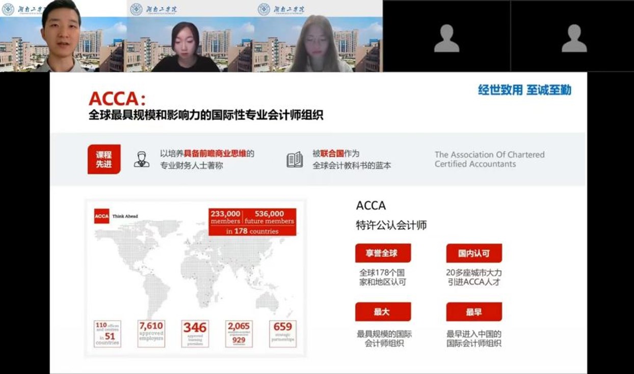 ACCA教学班优秀学生代表彭苗介绍了自己大学三年来取得的成绩和荣誉,系统分享了自己学习备考ACCA课程的经验方法及心得体会,鼓励学弟学妹们把握机会、早做规划,早日加入商学院ACCA和CFA“大家庭”,努力成长为优秀的复合型、国际化人才。