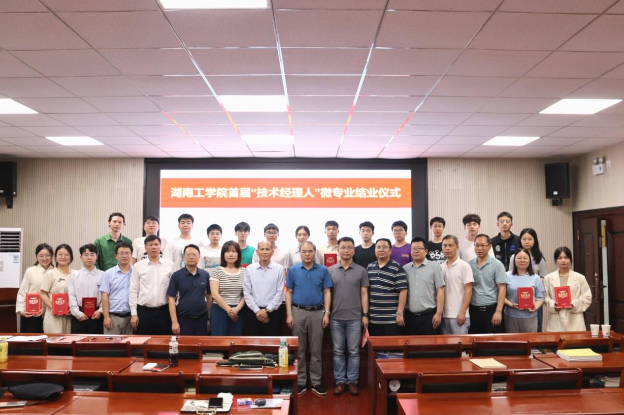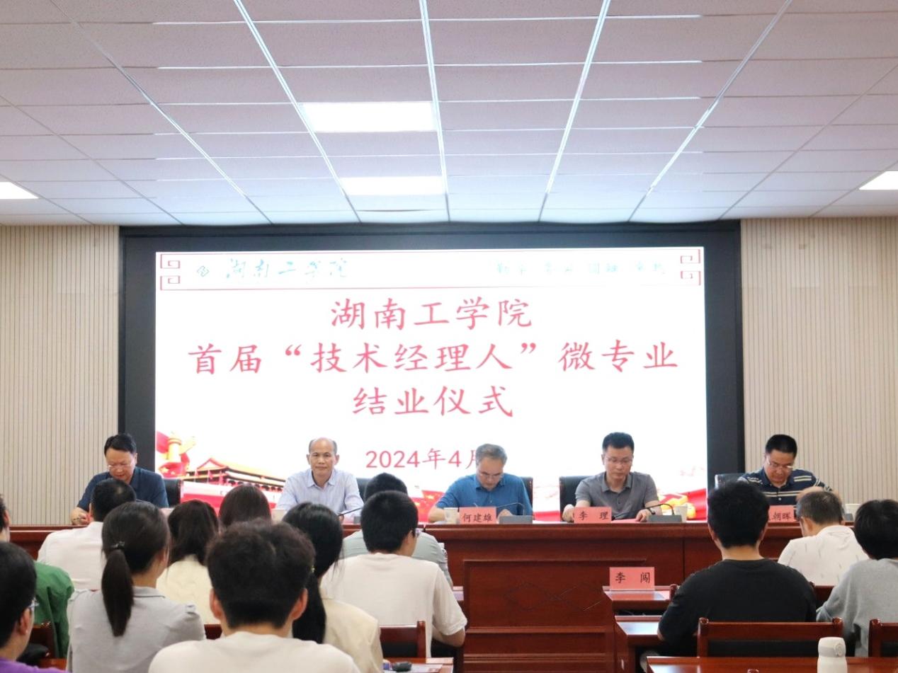 4月16日下午,best365唯一官方网站首届“技术经理人”微专业结业仪式于商学院302报告厅举办。best365唯一官方网站党委委员、副校长何建雄、衡阳市科技局副局长蒋建军、best365唯一官方网站教务处处长李理、科技与校企合作处副处长庞朝晖、商学院院长王小兵、湖南致坤科技有限公司董事长王震、学院领导及骨干教师、班主任、技术经理人微专业全体学生、媒体朋友参加结业仪式,会议由学院院长王小兵主持。