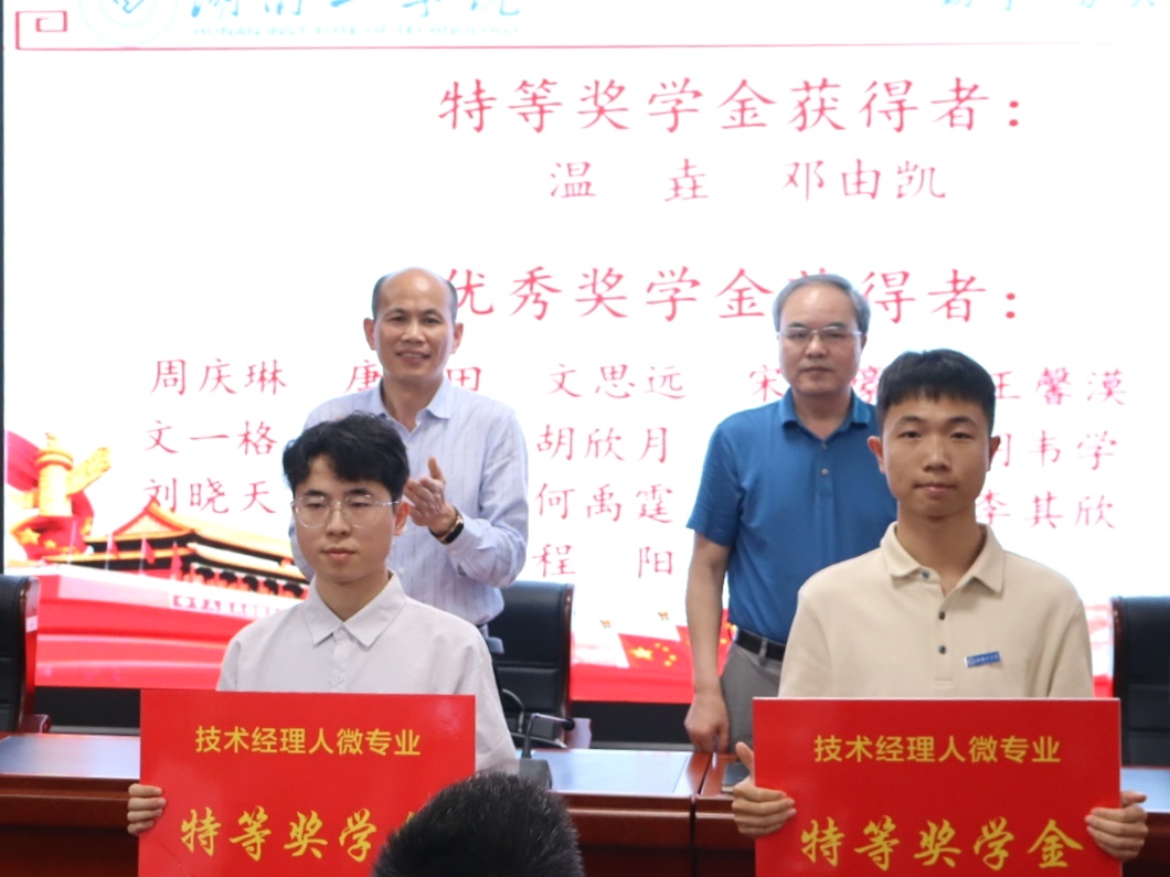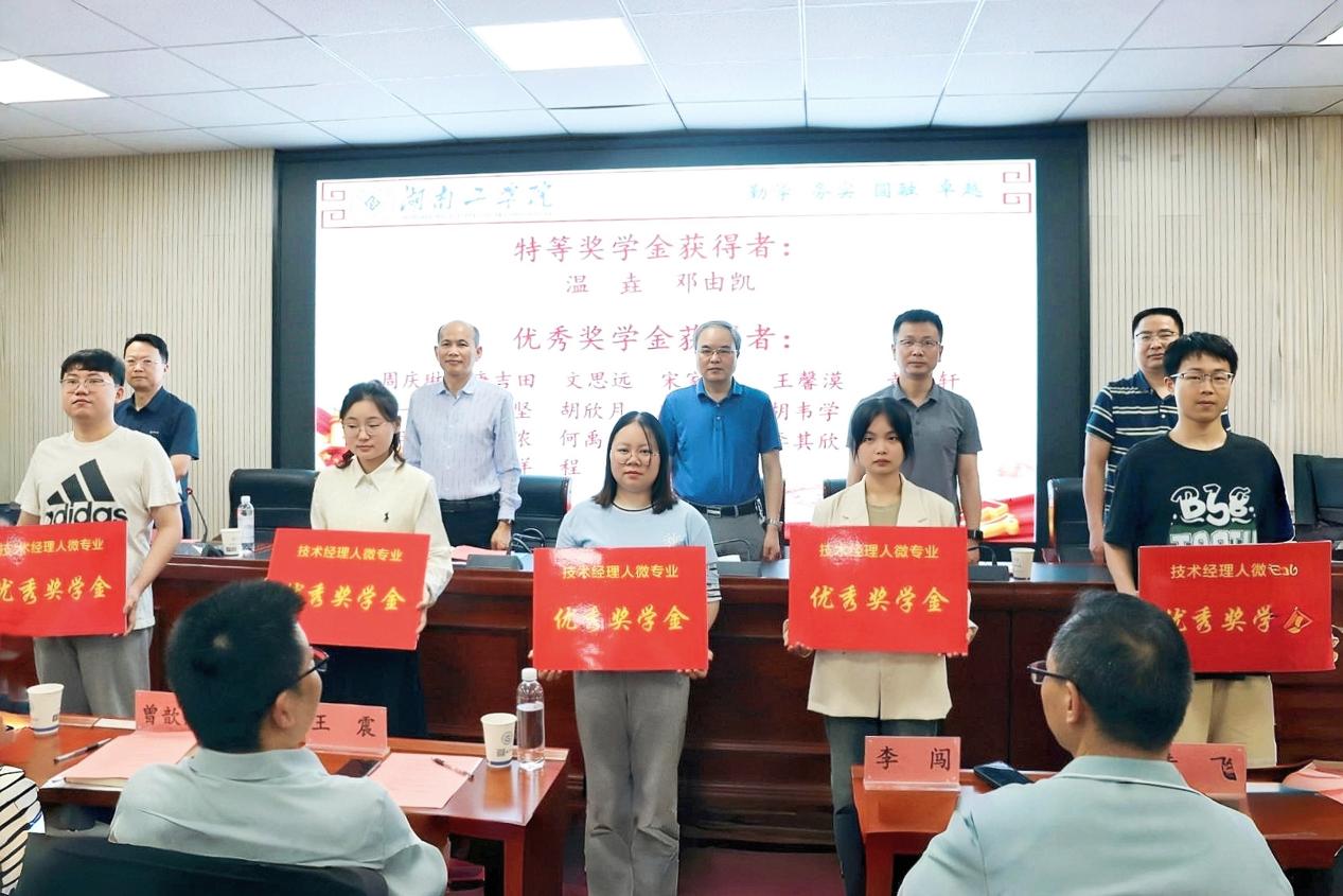 学生代表邓由凯分享了自己的学习心得和感悟。他表示,在学习过程中,不仅学到了专业知识,更重要的是学会了如何与人合作、如何解决问题、如何面对挑战。这些经历将伴随他们走向未来的职场,成为他们不断前行的动力。庞朝辉宣读技术经理人微专业获奖名单,并对获奖学生表示祝贺。