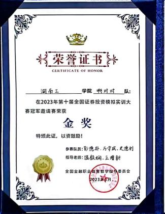 本专业学生获大学生创新创业竞赛国家银奖1项,省级一等奖1项,省级二等奖2项、三等奖6项,承担创新创业训练计划项目10余项,获湖南省大学生企业模拟经营竞赛一、二、三等奖共7项,全国大学生“新道杯”沙盘模拟经营大赛二等奖1项,湖南省大学生电子商务大赛一、二、三等奖20余项,全国金融与证券投资模拟实训大赛一、二、三等奖30余项,“挑战杯”创业计划大赛省级银奖、铜奖各1项。