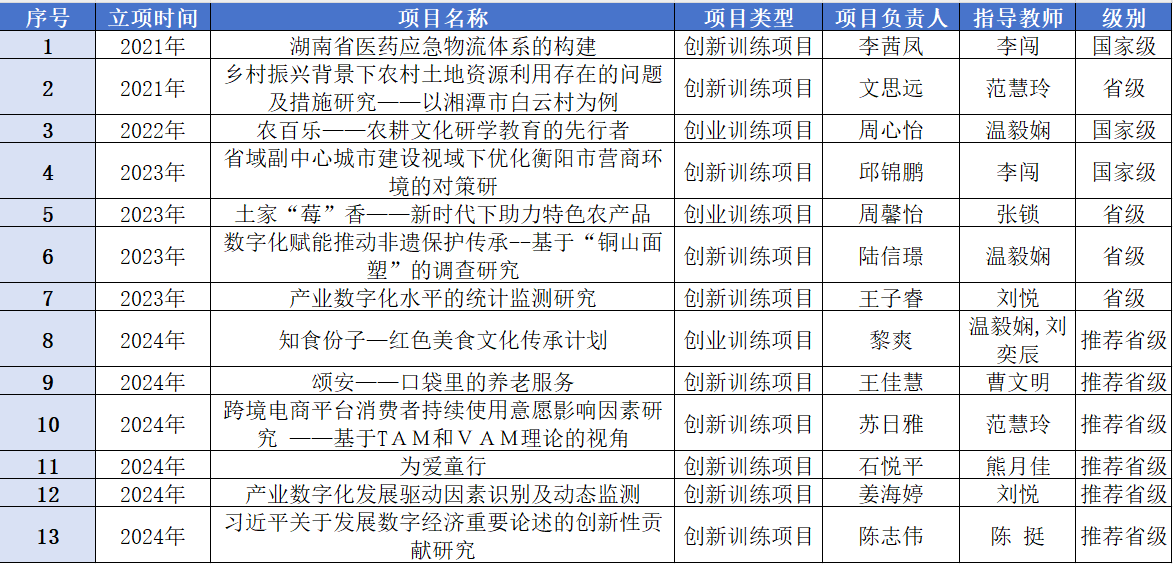 2021年-2024年国际经济与贸易专业师生创新创业训练计划项目
