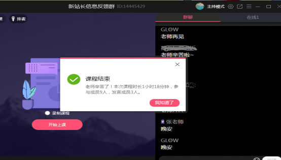 会议由教学质量监控与评估中心张老师主持。她肯定了疫情期间学生教学信息员在学校教学质量监控方面发挥的作用。就学生教学信息员工作的意义和职责、信息反馈的内容和要求及其途径、优秀学生教学信息员的评选及奖励办法等方面做了培训。张老师还听取和收集了学生们对前期网络课程教学效果的看法。会议气氛融洽而热烈,学生信息员站长们也纷纷发弹幕或开麦表示会履行好工作职责,努力达到工作要求,不辜负老师和同学们的期望,对工作产生了使命感与责任感。