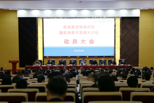 2021年10月19日下午,best365官网新一轮本科教育教学审核评估暨教育教学思想动员大会在500人报告厅顺利召开,旨在动员部署、全面启动学校新一轮本科教育教学审核评估工作,努力推动全校教职员工转变教育思想,更新教育观念,在全校上下形成解放思想、提高认识、求真务实、开拓创新的良好局面。全体在校校领导出席大会,大会由党委书记宋克慧主持。