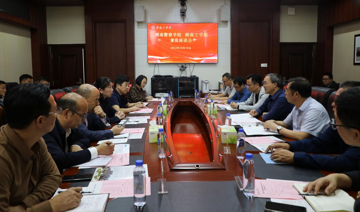 10月19日上午,湖南警察学院副校长皮华英一行15人来校考察交流本科教育教学审核评估工作。会议在教学大楼12楼会议室召开,学校党委委员、副校长何建雄出席交流会,教学质量监控与评估办公室主任彭志忠主持会议。