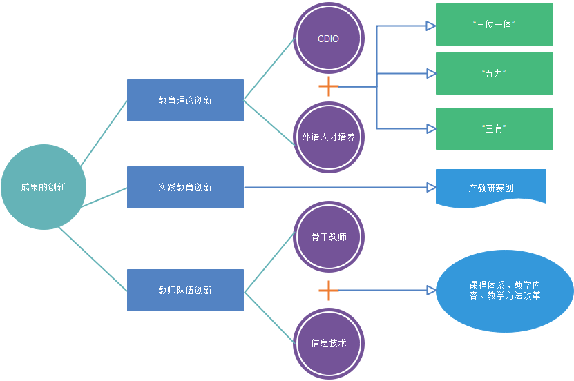 本项目的主要突破性进展就是凝练了“三有”复合型外语人才培养模式理念,推动了“三位一体”课程体系重构和实施,探索了“产教研赛创”实践教学新模式。