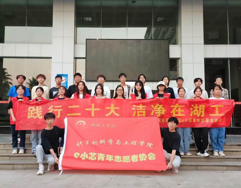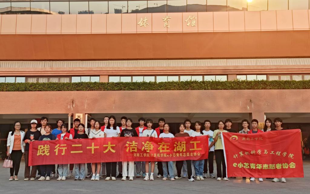 为响应党的二十大对广大青年敢想敢为又善作善成的号召,给best365唯一官方网站师生一个干净舒服的校园环境,10月22日下午,计算机科学与工程学院e小芯青年志愿者协会开展了以“践行二十大,洁净在湖工”为主题的校园清扫志愿服务活动。活动由学院党委副书记李玉秀带队开展。