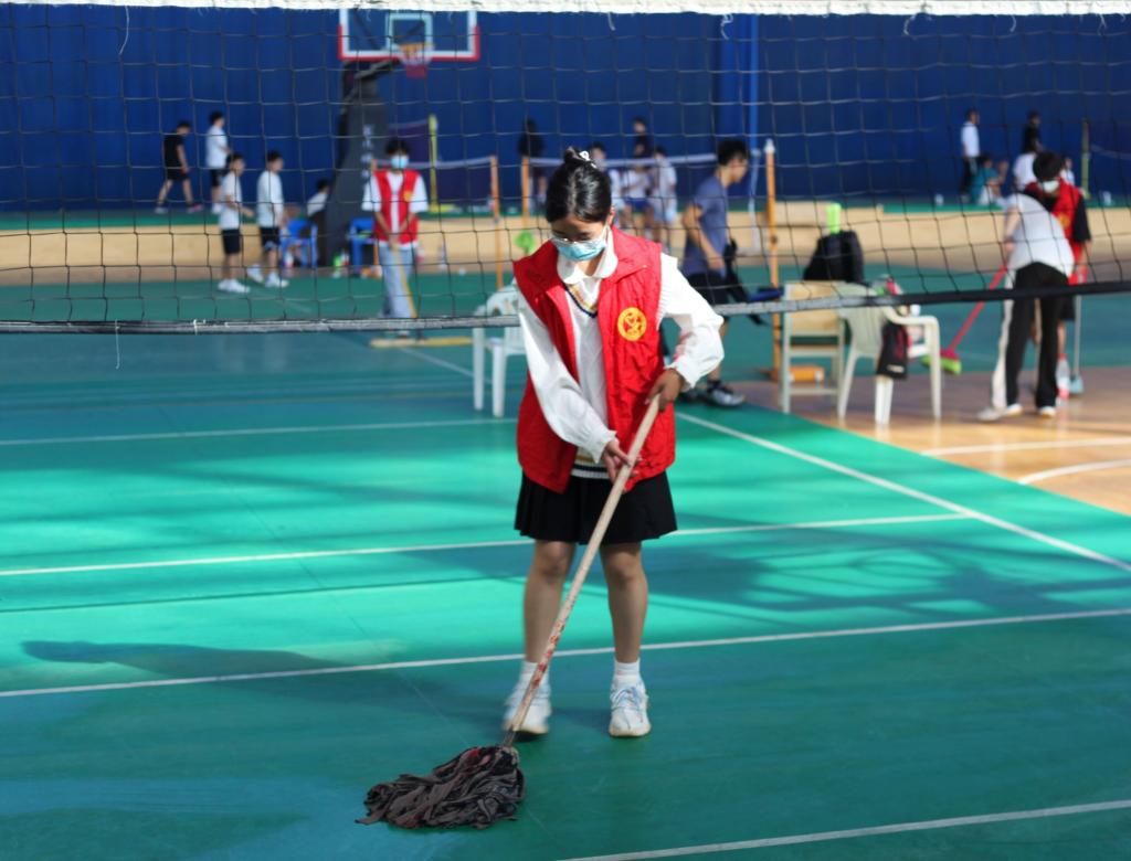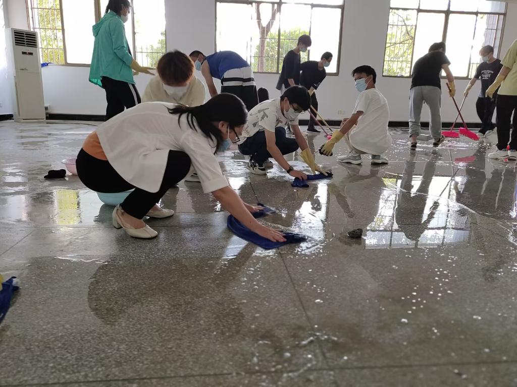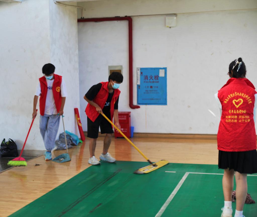 志愿者分为两队分别前往体育馆和信息楼,他们在教室和体育馆的各个角落来回穿梭,扫地,拖地,擦拭桌椅、清洁地板及窗户……三五一组,干劲十足,一项项工作有序进行。他们不怕脏,不喊累,经过三个多小时的“奋战”,体育馆和教室都变得光亮整洁、焕然一新。志愿者用实际行动为湖工增添了一份清新,一抹明亮。这不仅是一次美化校园、服务同学的活动,同时也让更多院内学子了解并投身到志愿者服务事业中,提升学校志愿者服务能力,营造和谐校园氛围,推动校园精神文明建设。