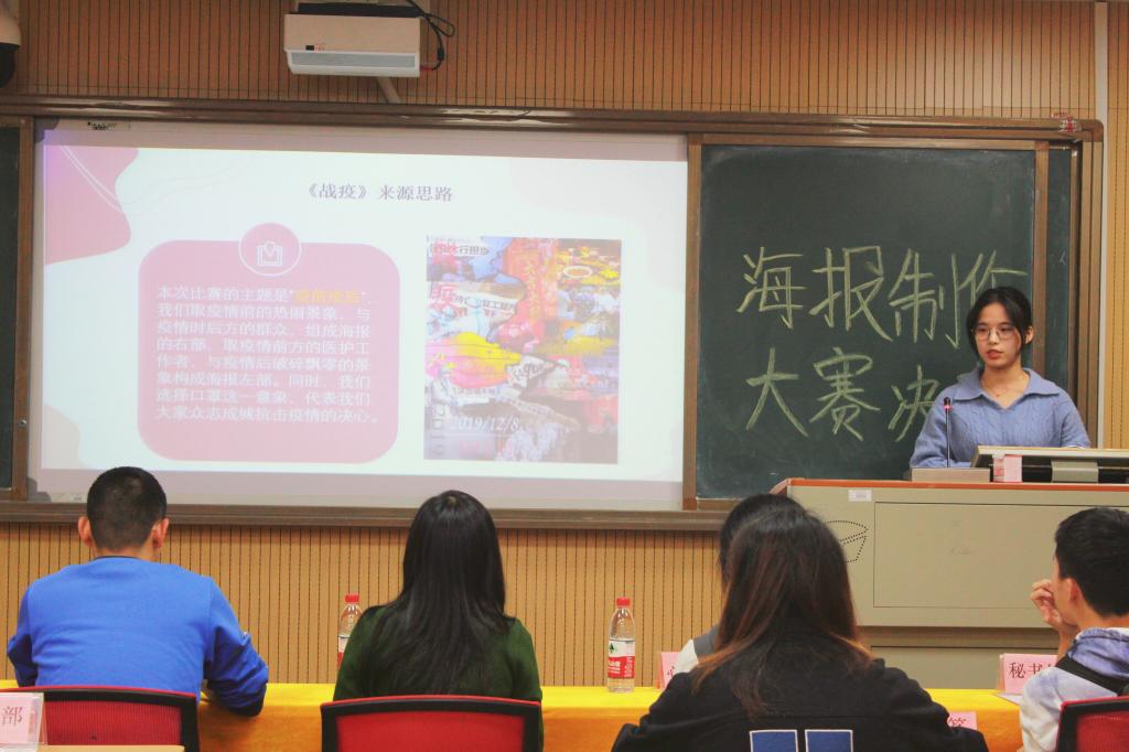 为了进一步促进学院人文精神建设,营造浓厚的文化氛围,展现同学们的创新思维和动手能力,11月3日晚上,计算机科学与工程学院在6408举行了“科技创新节-海报设计大赛”。学院党委副书记李玉秀、全体辅导员、团委学生会主席团及各部门部长出席并担任评委。