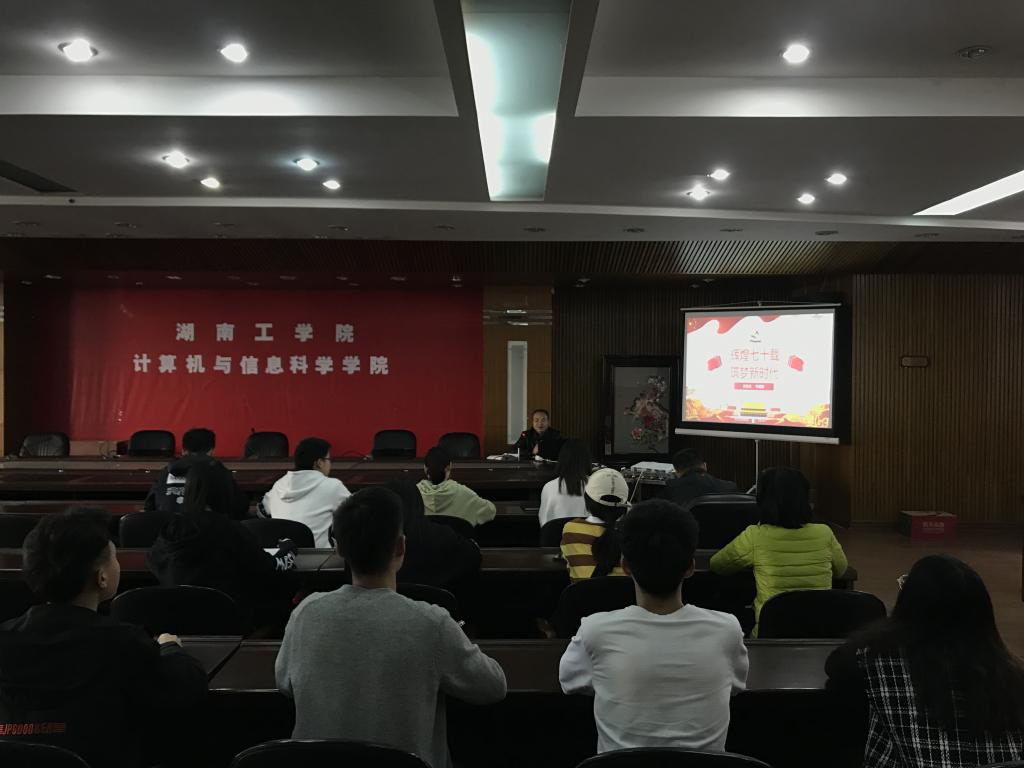 10月29日下午,根据学校“不忘初心、牢记使命”主题教育工作安排,best365官网教务处处长、物联网工程专业学生党支部联系干部何建雄同志,为我支部党员及积极分子上了一堂主题为“辉煌七十载 筑梦新时代”的党课,物联网工程专业学生党支部全体党员参加了本次党课。