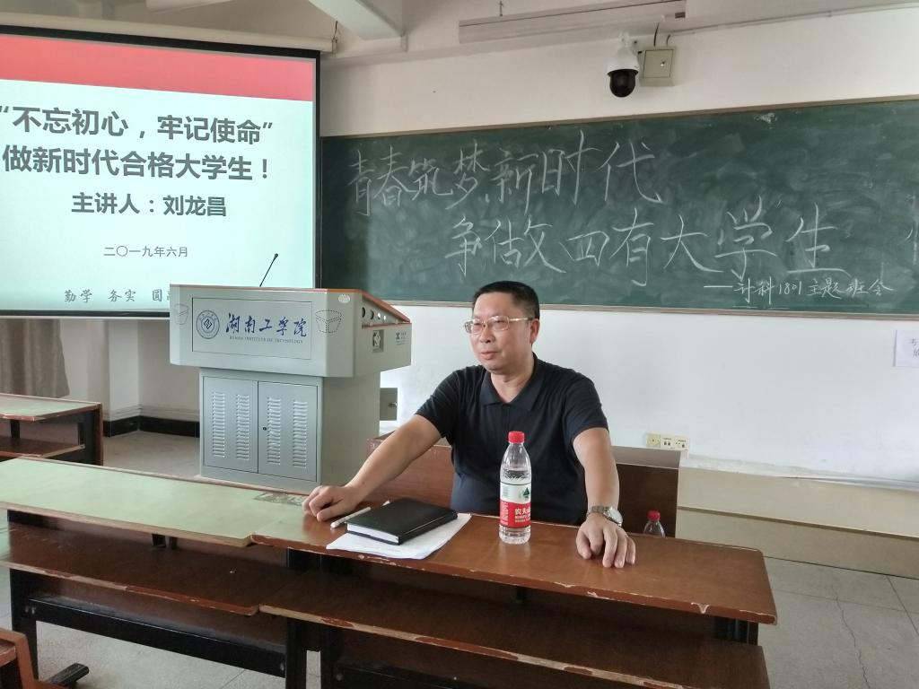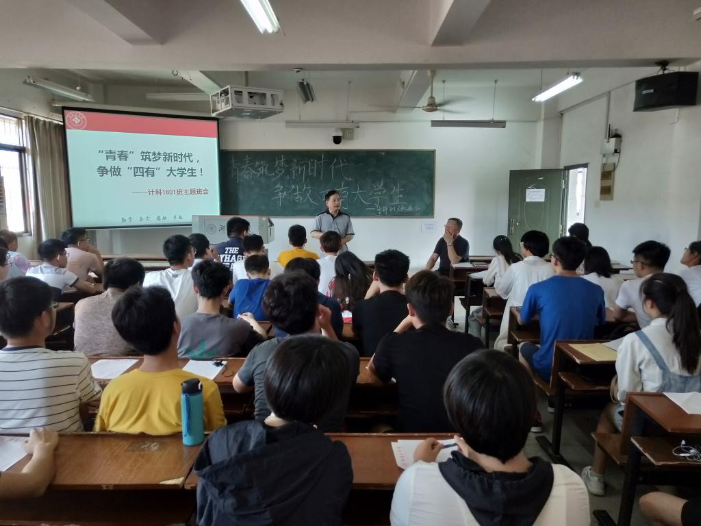 6月19日下午,计信学院计科1801班召开了一场以“青春逐梦新时代,争做四有大学生”为主题的班会活动。联系该班的校领导纪委书记刘龙昌参加了本次班会并给全班同学带来了一堂“坚定理想信念,做新时代合格大学生”的主题党课。