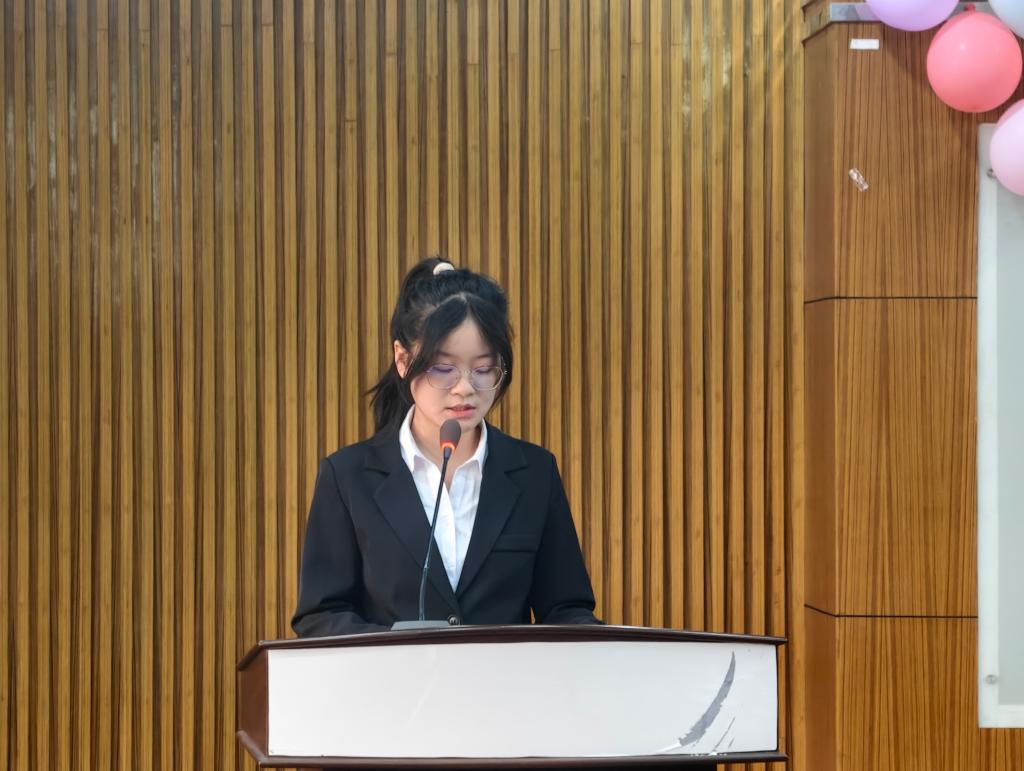 受助学生代表何金凤在发言中向罗海峰学长、学院领导及老师们致以诚挚谢意,她表示这份助学金既是物质支持,更是精神上的激励与指引,同时汇报了自己在思想淬炼、专业学习与社会实践等方面的成长收获,并郑重承诺将以此次受助为新起点,深耕专业、锤炼本领,积极投身公益、传递爱心火炬,用实际行动回馈母校栽培与社会关爱。