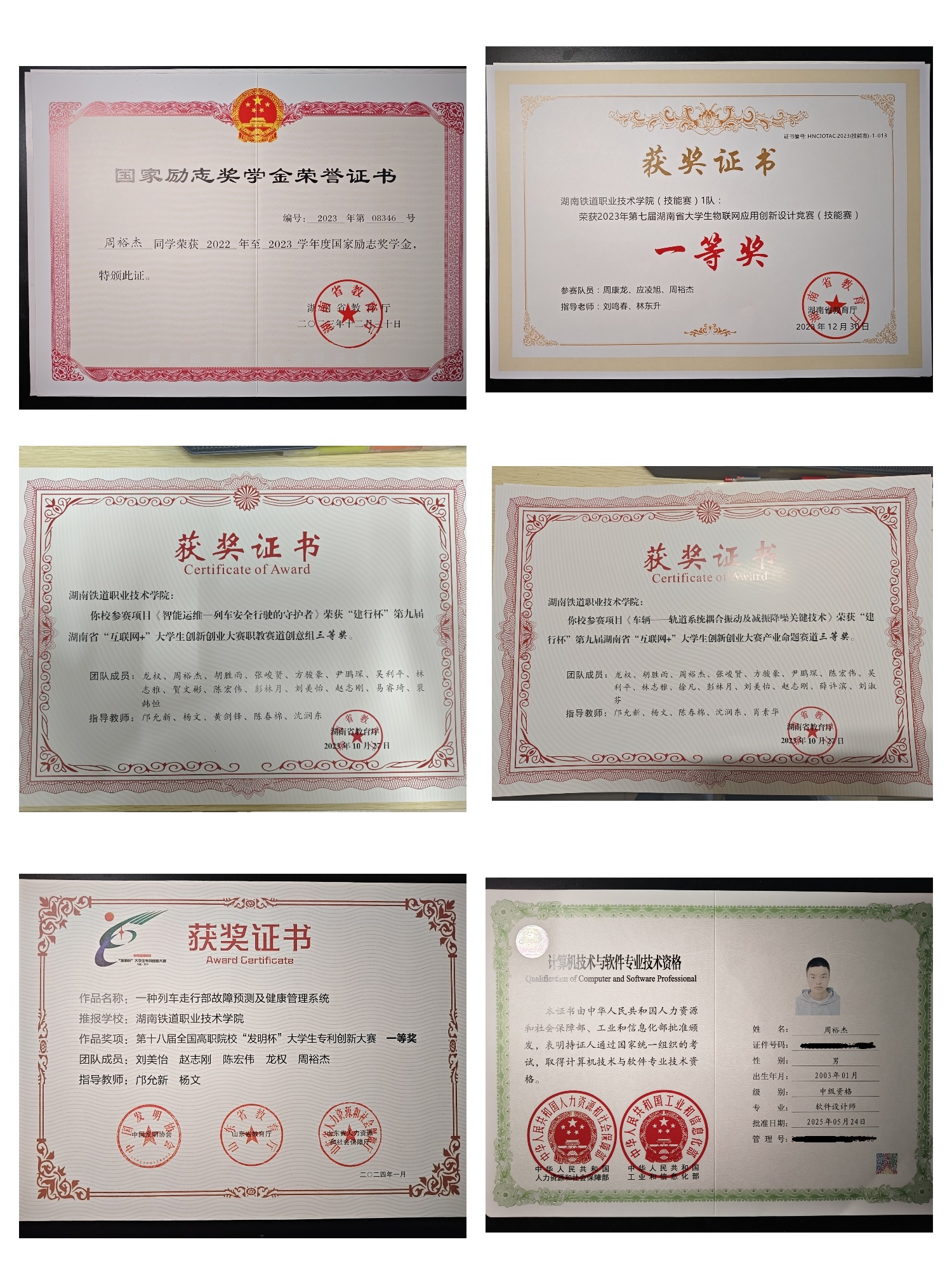 周裕杰,男,汉族,中共党员,计算机科学与工程学院2022级软件工程专业学生。荣获国家励志奖学金2次、校级一等奖学金1次、校级二等奖学金1次、校级三好学生2次。在校期间积极参加比赛,荣获第七届湖南省物联网竞赛省一等奖、第九届湖南省“互联网+”大学生创新创业大赛三等奖,第十五届“挑战杯”湖南省大学生课外学术科技作品竞赛三等奖等,累计获得省级以上荣誉9项。