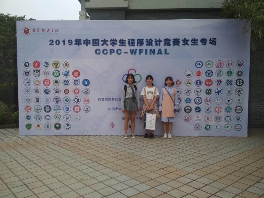 6月2日,由教育部高等教育计算机类教学指导委员会主办、南京晓庄学院承办的2019中国大学生程序设计竞赛女生专场在南京晓庄学院方山校区举行。best365官网选派了1支由李紫薇、孙姝睿、黄昕琪组成的女生代表队参赛,和来自清华大学、上海交通大学、南京大学、东南大学等国内96个高校的155支参赛队伍同场竞技,经过激烈角逐,获得铜奖。