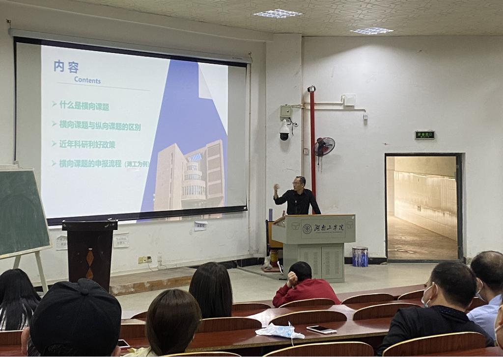 柳佳刚博士围绕“省市联合基金的申报”主题,从湖南省自然科学基金的现状,湖南省自然科学基金联合基金的现状,衡阳基金联合基金的申报三个方面分享了他做科学研究和申报项目的经历和体会。他告诉大家,联合基金的选题要紧扣“三高四新”战略,紧跟“一核两电三色四新”产业科技创新需求,在产业应用背景下,做具有一定理论深度,以获得新能源、新技术、新方法为主要目标点的研究。