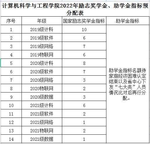 计算机科学与工程学院2022年国家励志奖学金、国家助学金评选工作方案
