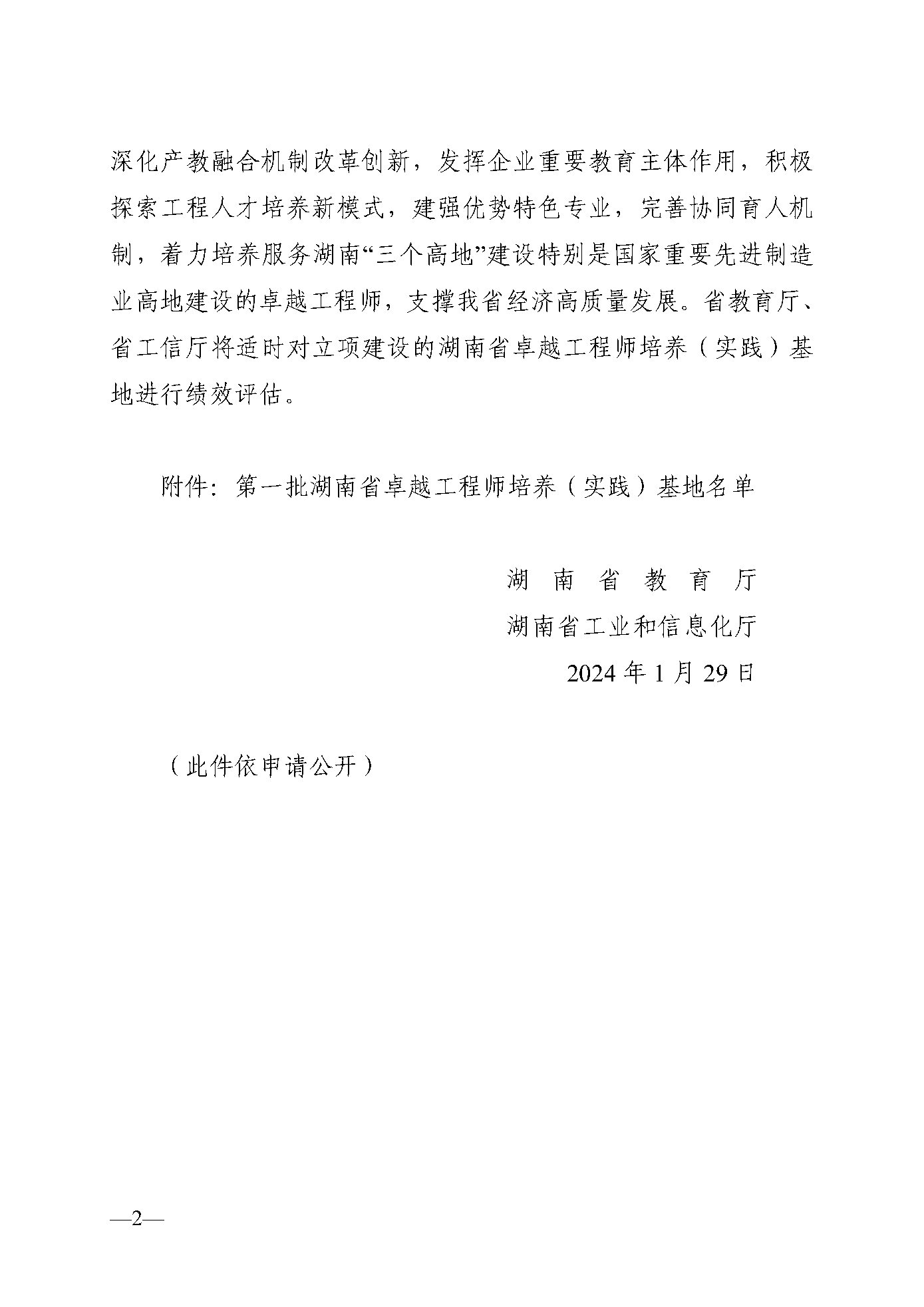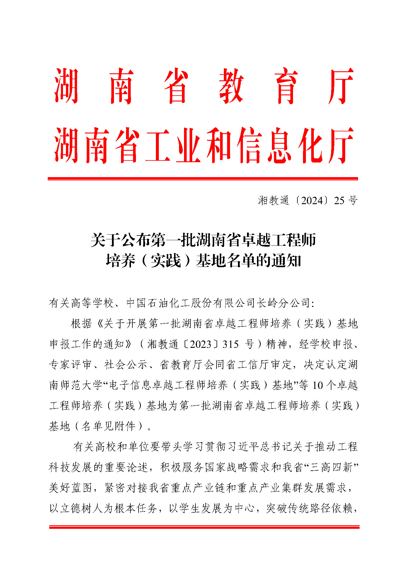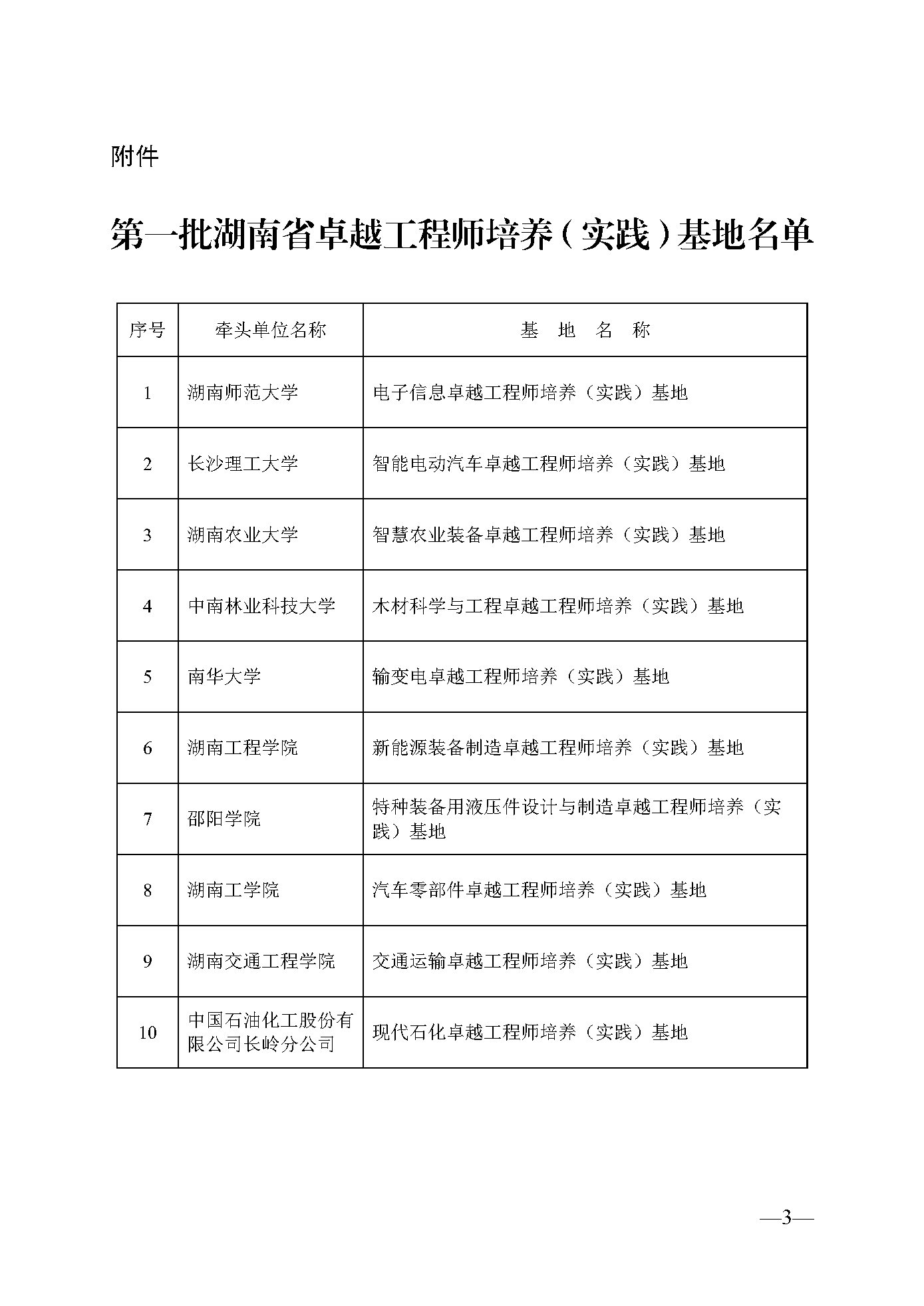 关于公布第一批湖南省卓越工程师 培养(实践)基地名单的通知