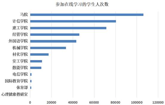 全校参加在线学习的学生总人数为18716,截至4月3日参加在线学习的学生人次数为422785。