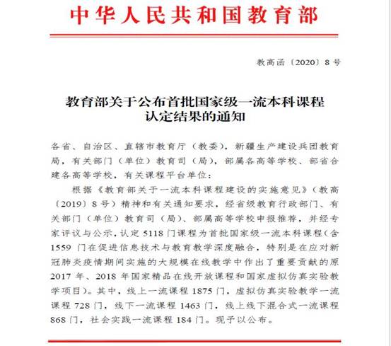 近年来,best365官网不断在课程建设方面加大投入,持续推进信息技术与教育教学的深度融合,建设了一批优质课程,为学校一流专业和一流学科建设提供了坚实基础。本次国家级一流课程认定是荣誉也是督促,希望全校教师能以此为目标,继续深耕一流课程建设,争取取得更多成绩!(教务处 颜军)