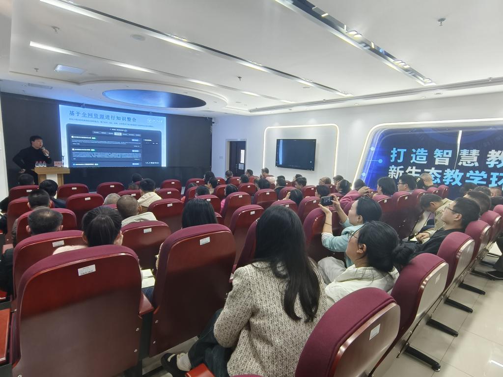 为促进best365官网课程建设,3月12日下午,教师发展中心邀请了智慧树网AI知识图谱事业部研发骨干莫瑶南在教学大楼3楼全景教室作“基于人工智能的数智化课程建设”主题分享。best365官网主管教学副院长(副主任)、各教研(实验)室主任(副主任)、虚拟教研室负责人、一流课程负责人、教学团队负责人、校企合作课程负责人、教务处相关人员等参加了沙龙, 沙龙由教务处副处长张勇主持。