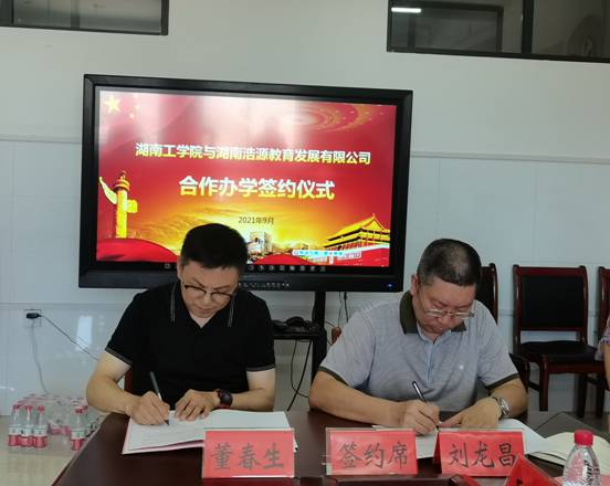 最后,在全体参会人员的见证下,刘龙昌副校长代表学校与湖南浩源教育发展有限公司签署了合作协议。