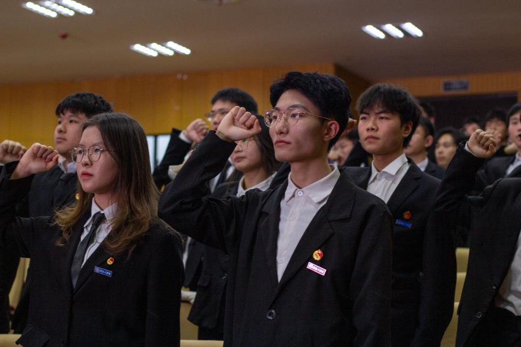 凝心聚力、奋发前行第十五届院学生会轮值主席赵鑫龙接过书记授旗。随后他代表第十五届团委、学生会作就职演讲,团委常务副书记王晨宇带领智能制造与机械工程学院十五届团委学生会全体成员宣誓。