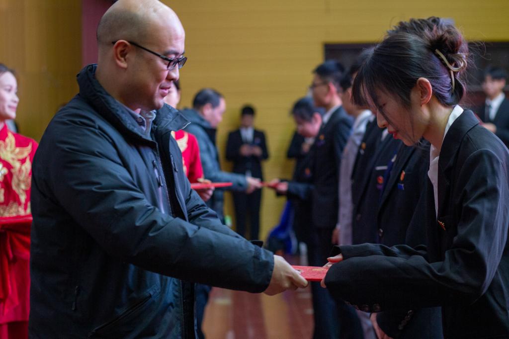最后,党委书记范志明在讲话中指出,学生干部是学生中的骨干分子和中坚力量,学生干部队伍的素质和工作能力是做好团学工作的关键所在,直接关系到学校整个育人目标的实现。他对新上任的学生干部提出四点希望和要求:要坚定理想信念、提高政治站位。带头坚定理想信念,带头担当尽责,带头刻苦学习,努力成长为让党放心,让青年满意的学生干部;要立足成长成才、积极投身实践。在实践锻炼中加强磨练、增长本领;要锻造优良作风,发挥好模范带头作用。用实际行动,做好广大同学的表率,传递好思想、传递正能量;牢固树立服务意识,扎根于青年学生中间。要将思想政治引领和服务学风建设作为下一年团学工作的重点,围绕学院中心工作开展活动,紧密联系广大青年学生。