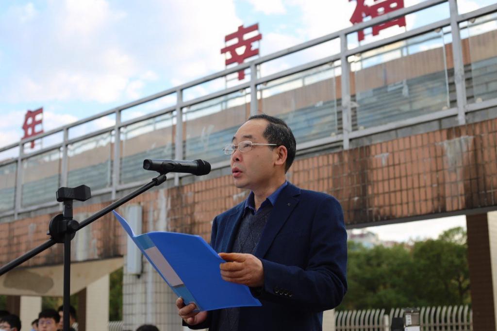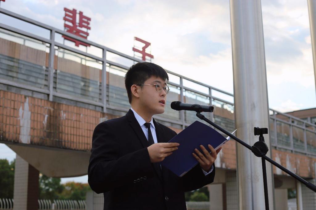 学生代表赵鑫龙同学发言,他表示我们新时代青年应当笃行不怠,奋发向上,在新时代征程中不忘初心,永跟党走,在新的征程中留下属于我们的青春印记。