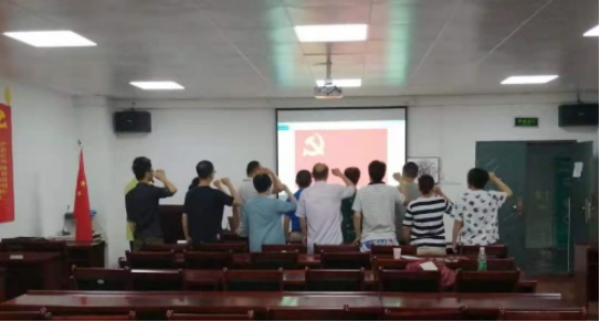最后,黄建平同志带领支部成员在鲜艳的党旗下庄严宣誓,重温了入党誓词。