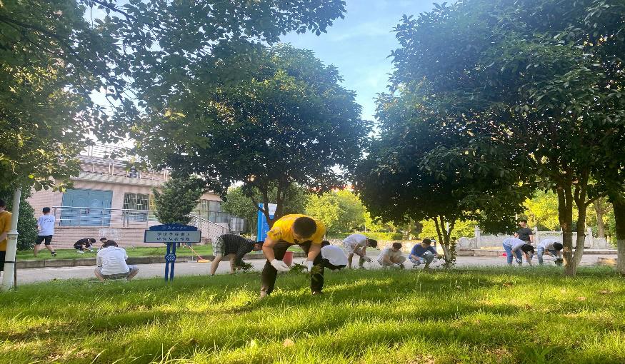 为全力支持创建国家卫生城,建设美丽新衡阳工作,进一步加强毕业生党员党性教育,增强毕业生党员的服务意识和社会责任感,充分发挥毕业生党员的先锋模范作用。6月12日下午,机设机电专业学生联合党支部毕业生党员,在校内开展志愿服务活动。活动现场,志愿者们对机械楼旁绿化区的杂草进行了清理,烈日下挥洒辛劳汗水的身影成为校园中一道亮丽的风景线。