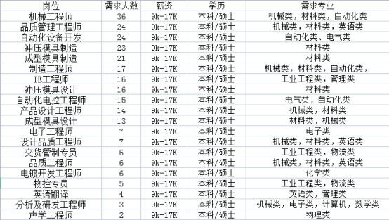 招聘专业:英语,商务英语,机械类,机械工程,机械设计制造及其自动化,材料成型及控制工程,机械电子工程,材料类,材料科学与工程,材料化学,高分子材料与工程,电气工程及其自动化,自动化类,自动化