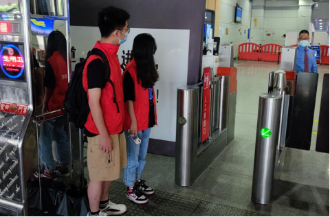 活动期间,志愿者们走进衡阳东站,他们热情帮助乘客提行李,引导不熟悉流程的乘客进站,协助工作人员查看绿色通行码等,身着红色马夹的青年志愿者在衡阳东站显得格外耀眼,充分彰显着机械学子蓬勃的青春气息和昂扬的精神风貌。