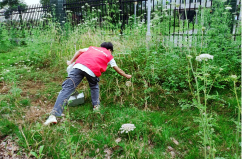 志愿者们在学校周边认真仔细地清理绿化带内的垃圾,并积极向附近居民宣传“双创”的重要意义,引导大家争做美化市容市貌的行动者。