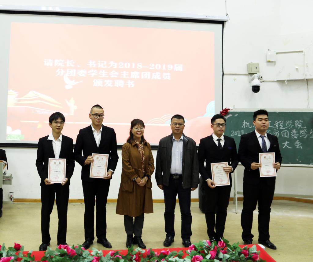 大会期间,刘吉兆和王丽娟为2018—2019届主席团成员颁发聘书,张艳霞和程斌宣读2019-2020届分团委学生会部门负责人名单。