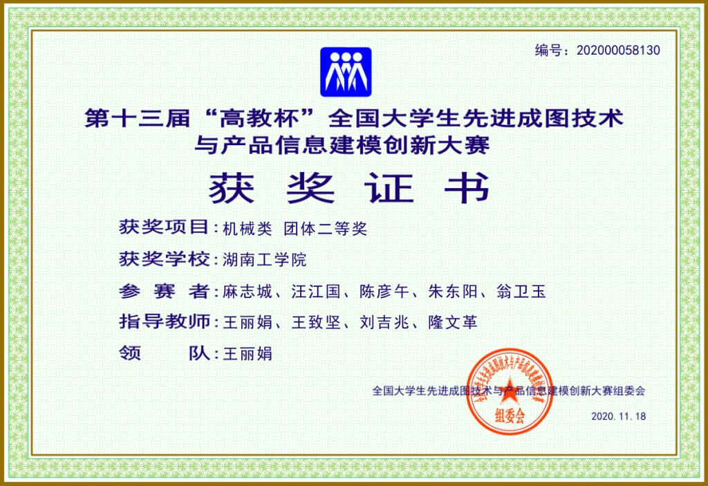 “高教杯”全国大学生先进成图技术与产品信息建模创新大赛由教育部高等学校工程图学课程教学指导委员会、中国图学学会制图技术专业委员会和中国图学学会产品信息建模专业委员会联合主办,是图学类课程最高级别的国家级赛事,2018年被中国高等教育学会列入全国普通高校学科竞赛排行榜。被中国工程图学学会赞为图学研究、教育、实践和改革上的创新,由于其具有规模大、水平高、参赛人数多等特点,被誉为“图学界的奥林匹克”。