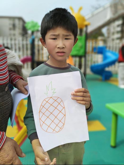 欢声笑语后,天边渐渐有了橙色,小葵花和小朋友拿起了画笔