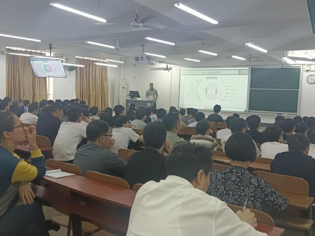 刘鹏程博士在讲授“动力电池领域产业状况”时,以“个人发展与国家政策支持融合”为主题,将“价值实现”理念贯穿全程。通过剖析我国新能源汽车产业政策与技术突破,他引导学生思考职业规划与国家战略的协同,强化专业使命感将思政育人功能充分运用到课堂教学当中,在场听课教师深受启发。
