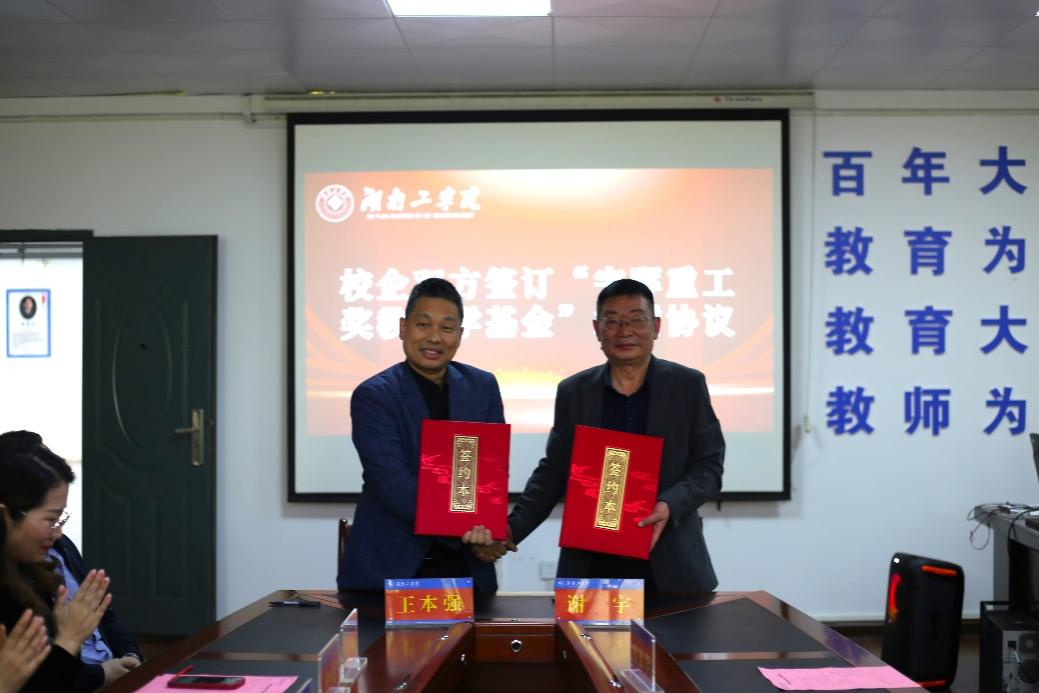 随后双方签订了“宇晖重工奖教奖学基金”捐赠协议。这次设立考研奖教奖学金,将激励广大学生追求考研梦想,推动广大教师潜心教学,极大地提高学校教学质量和人才培养质量。学院将一如既往,凝心聚力,培养出更多有理想、敢担当、能吃苦、肯奋斗的优秀人才。(智能制造与机械工程学院 文/肖苑君 段翔宇 王仲谋 图/冯梓杰 审核人/一审:朱欢 二审:王本强 三审:吴远志)