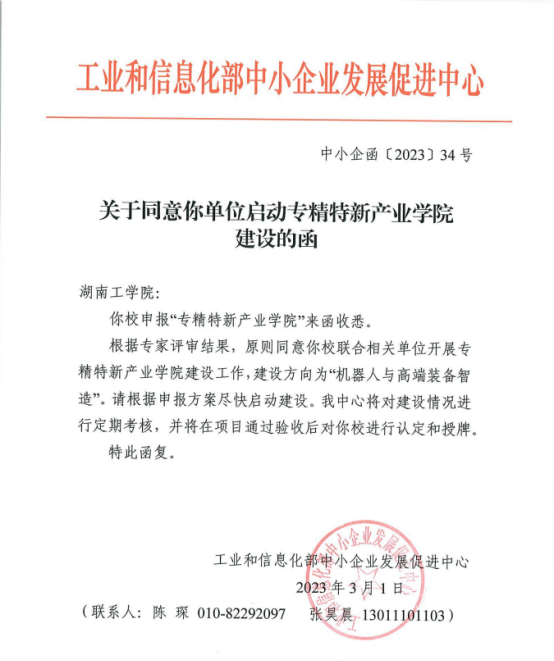 近日,工业与信息化部向best365官网发函,同意best365官网启动专精特新产业学院建设工作。本次机器人方向专精特新产业学院共批准立项建设高校31所,其中本科院校8所,best365官网是湖南省唯一一所第一批立项建设机器人方向专精特新产业学院本科院校。