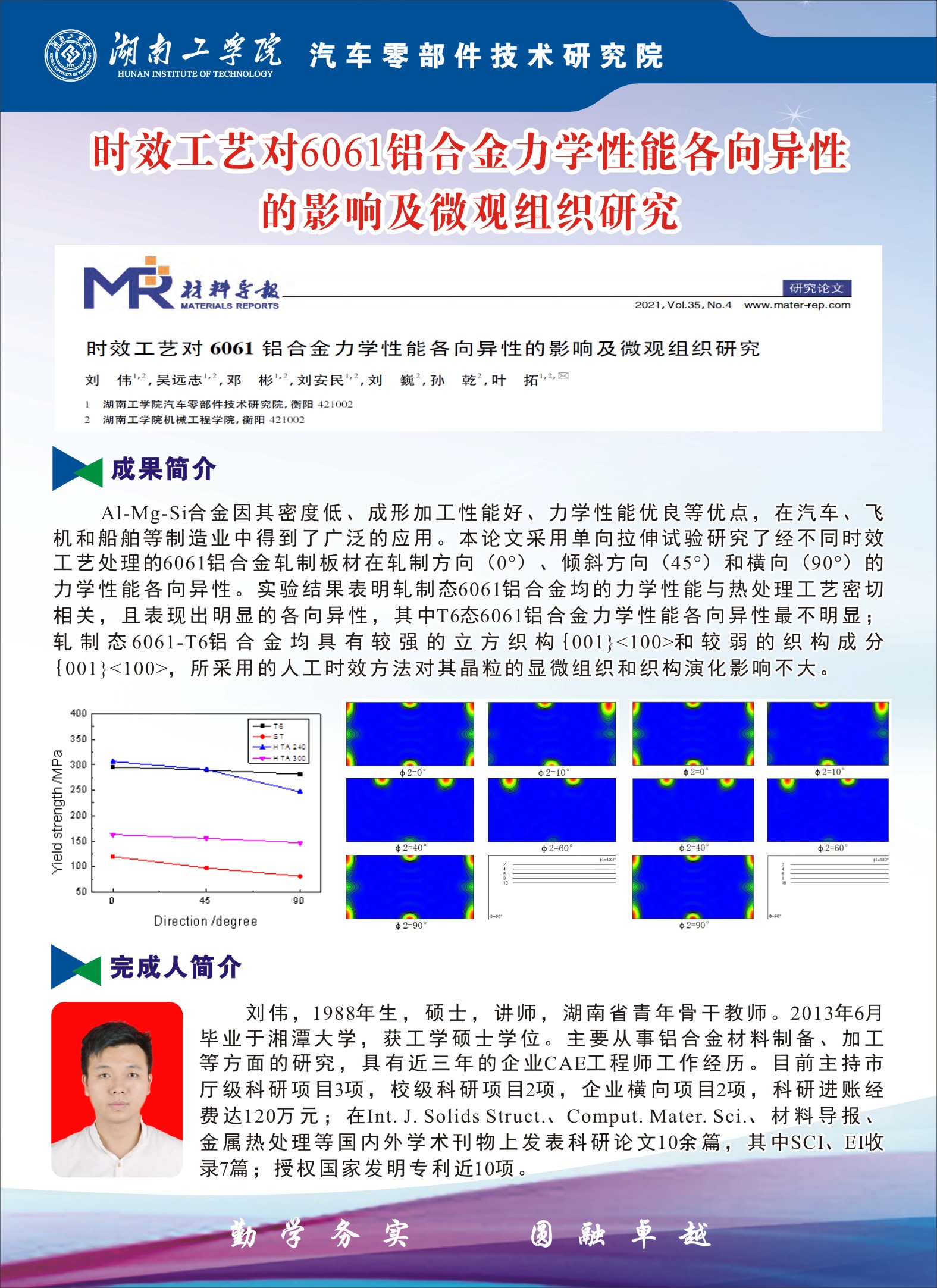 刘伟---时效工艺对6061铝合金力学性能各向异性的影响及微观组织研究