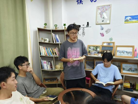 鼓励同学们去图书馆或者来到寝室图书角进行阅读。并利用线上平台(钉钉、腾讯会议等)分享读后感,营造出良好的共读、共享氛围。线下“雁鸣悦享会-读书沙龙”活动顺利进行,并由曹德春、王璐等同学分享自己的最近就读书籍。
