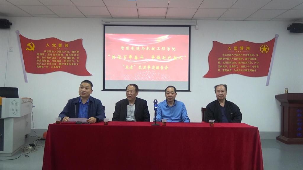 为深入学习贯彻党的十九届六中全会精神和习近平总书记对关心下一代工作的重要指示精神,发挥“五老”在党的百年奋斗历程中亲历者、见证者、实践者的优势,以优异的成绩迎接党的二十大胜利召开,4月25日,best365唯一官方网站智能制造与机械工程学院邀请了湖南省首届普通高等学校教学名师、享受政府特殊津贴的老教授刘志儒同志和曾参加对越自卫反击战、具有50多年党龄的老党员黄耀忠同志来校向青年学生分享自己的先进事迹,讲述党的百年奋斗历程。学院党委书记范志明、全体辅导员和学生代表参加了此次活动,本次活动由党委副书记王本强主持。
