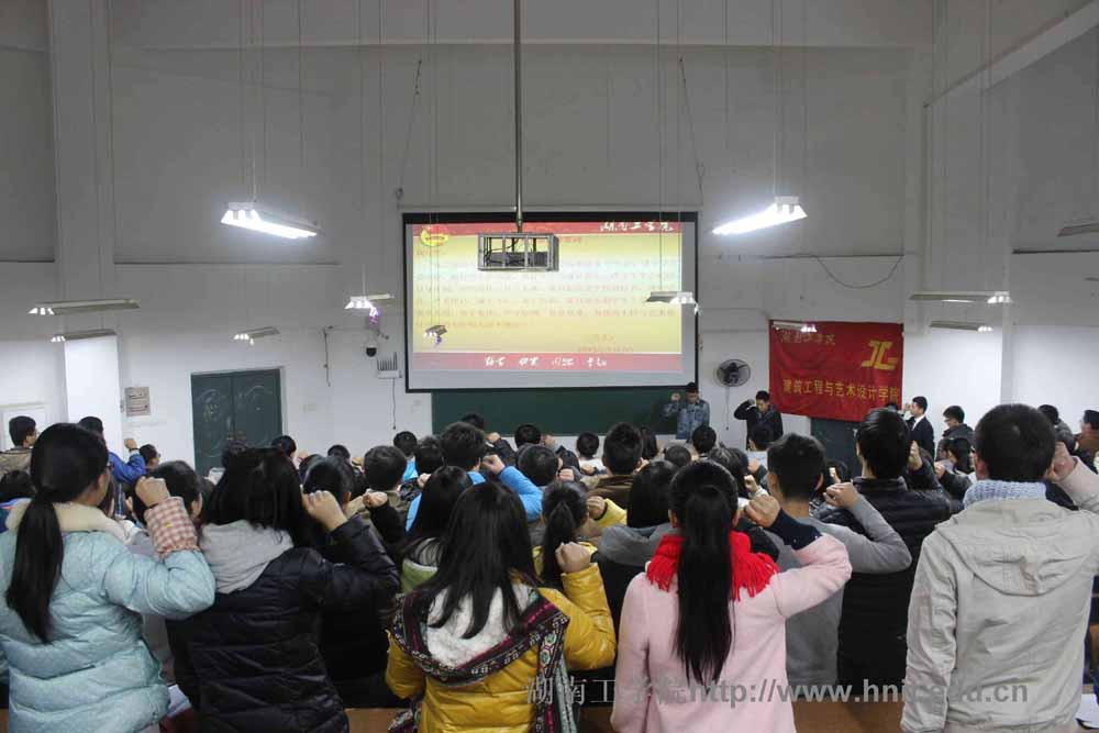 1月7日晚6时,我院第七届团总支学生会干事宣誓大会在3209教室举行,团总支书记黄馨仪、学生工作办公室谭进老师以及学生会全体成员出席会议。