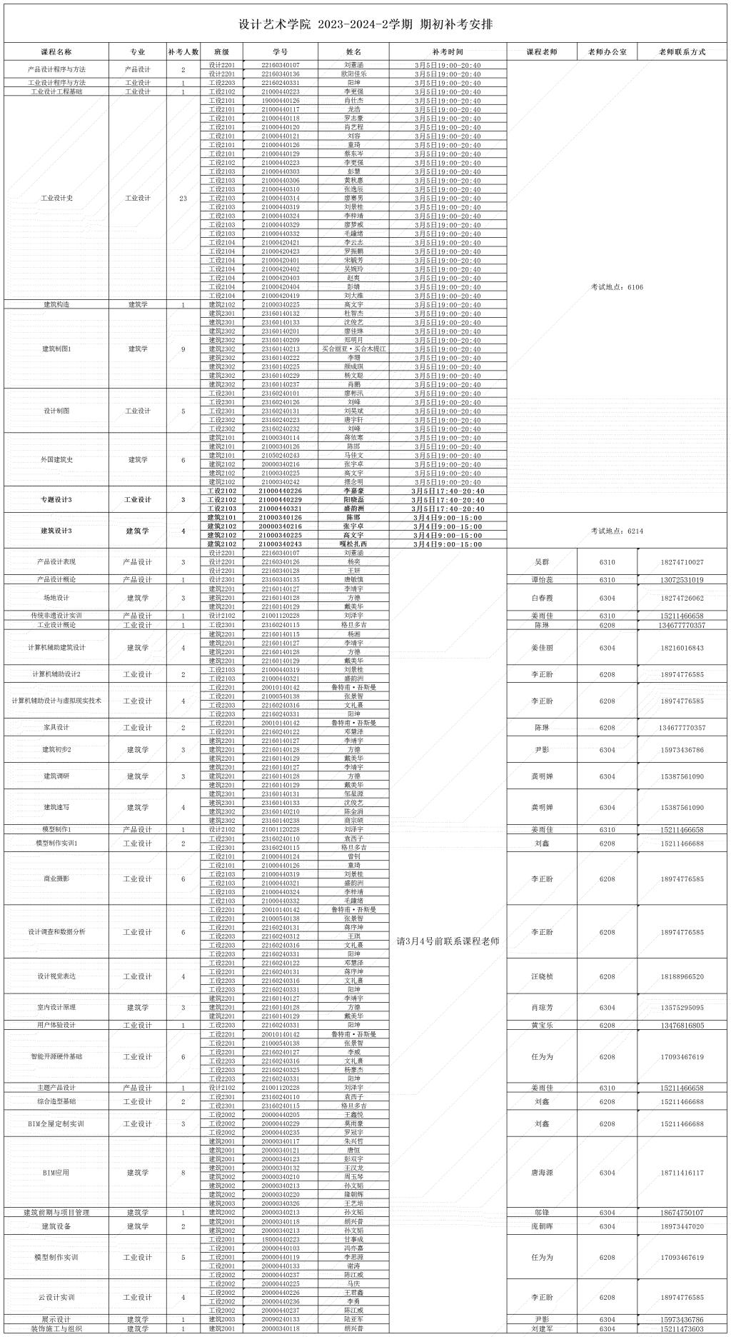 设计艺术学院23-24-2期初补考考试安排表