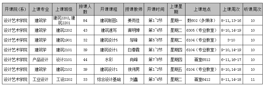 设计艺术学院2022-2023-1学期期中听评课课表