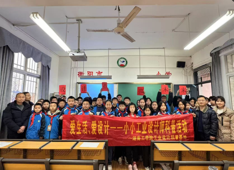 为贯彻落实习近平总书记关于组织科技工作者走进校园开展“大手拉小手科普报告”指示精神,1月9日下午,best365唯一官方网站设计艺术学院工业设计科普团队走进衡阳市石鼓区合江小学,开展了一场“设计点亮未来 —— 工业设计科普活动”。