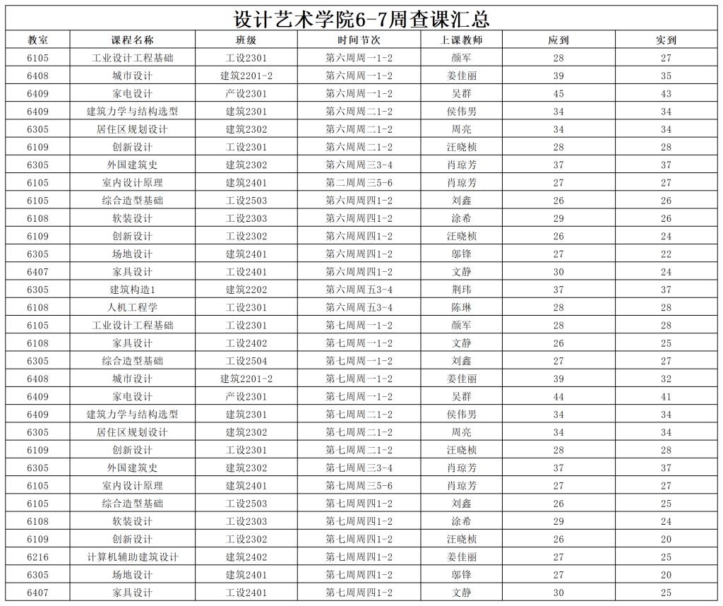 根据学院第6-7周课堂考勤数据统计,现将到课情况通报如下: